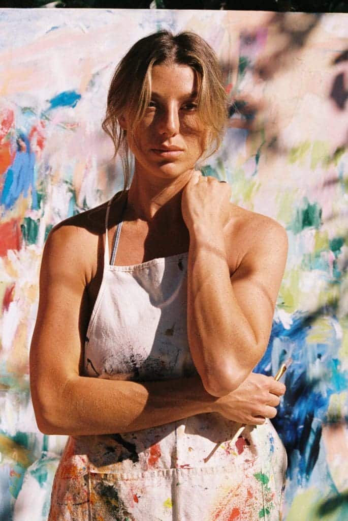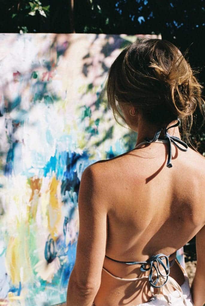 “I live in a never-ending dream inside my head.” This might be the best way to describe Amanda Tutschek, whose every answer during her interview with editor-in-chief Charles Finch emits a sunny, optimistic glow. It makes sense, then, that the Canadian artist is currently based in Venice, which she says she has quickly fallen in love with. Starting out as a model for Guess, the abstract painter has recently started a new chapter, launching The Painted Peach, private sessions where like-minded artists can get together, drink wine, and, of course, paint. Below, Amanda talks artistic inspiration, living in a movie-town, and her relationship with cars, alongside photography by Matilda Montgomery.