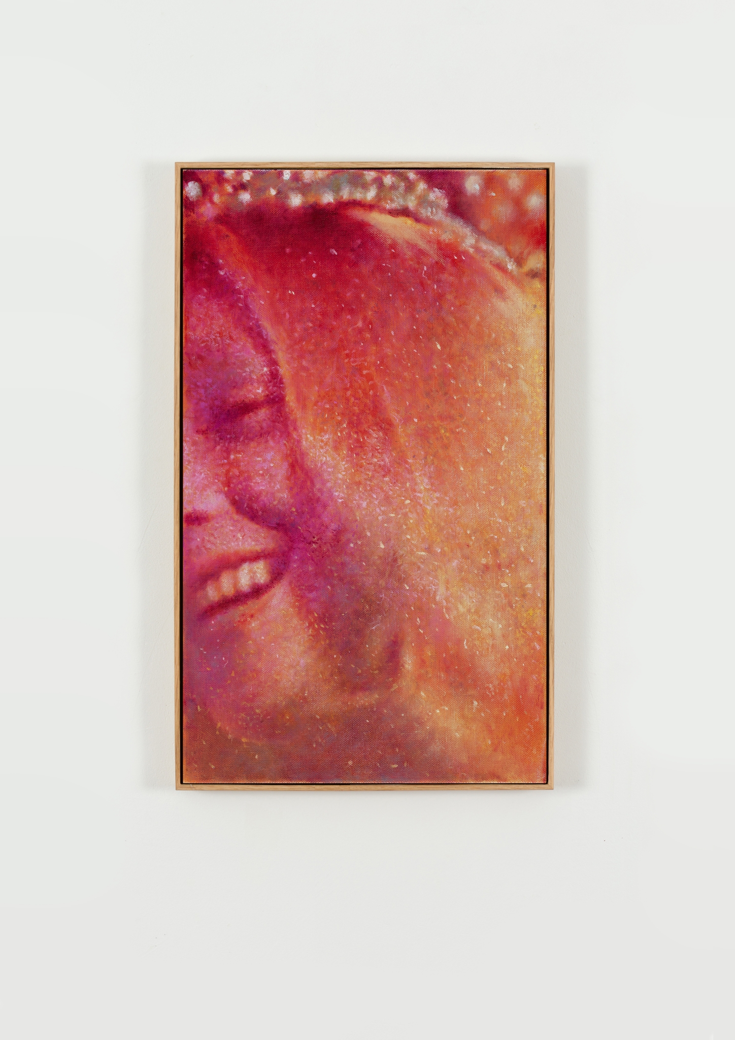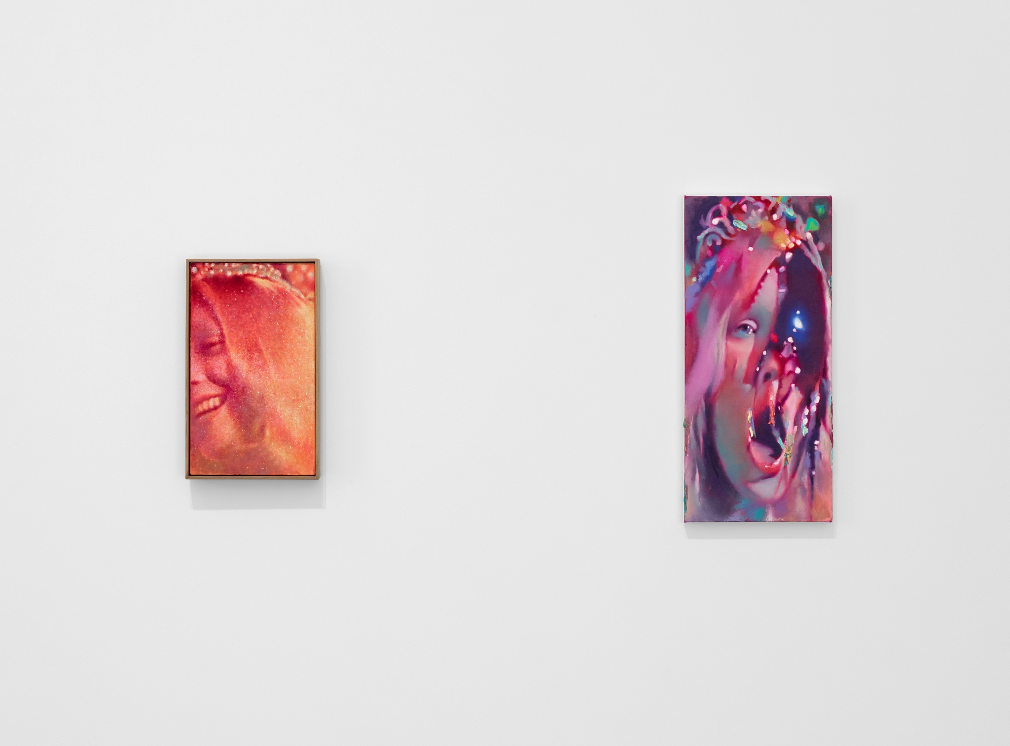Before it was a music venue, London’s Scala, on the corner of Pentonville Road in King’s Cross, was a notorious picture house with a unique progamme favouring cult arthouse, horror and queer cinema. Growing up with extended family on the nearby Caledonian Road, the area is etched into memory for the artist Louise Giovanelli, who’s repurposed the venue’s moniker for a striking new painting. “It references this idea of the theatre and what that place used to be, but also the pigment is called Scala pink,” she offers over Zoom, highlighting the components of the piece, a diptych of a pink curtain glazed to appear, additionally, purple and blue. “So it was just a nice symbiosis.”