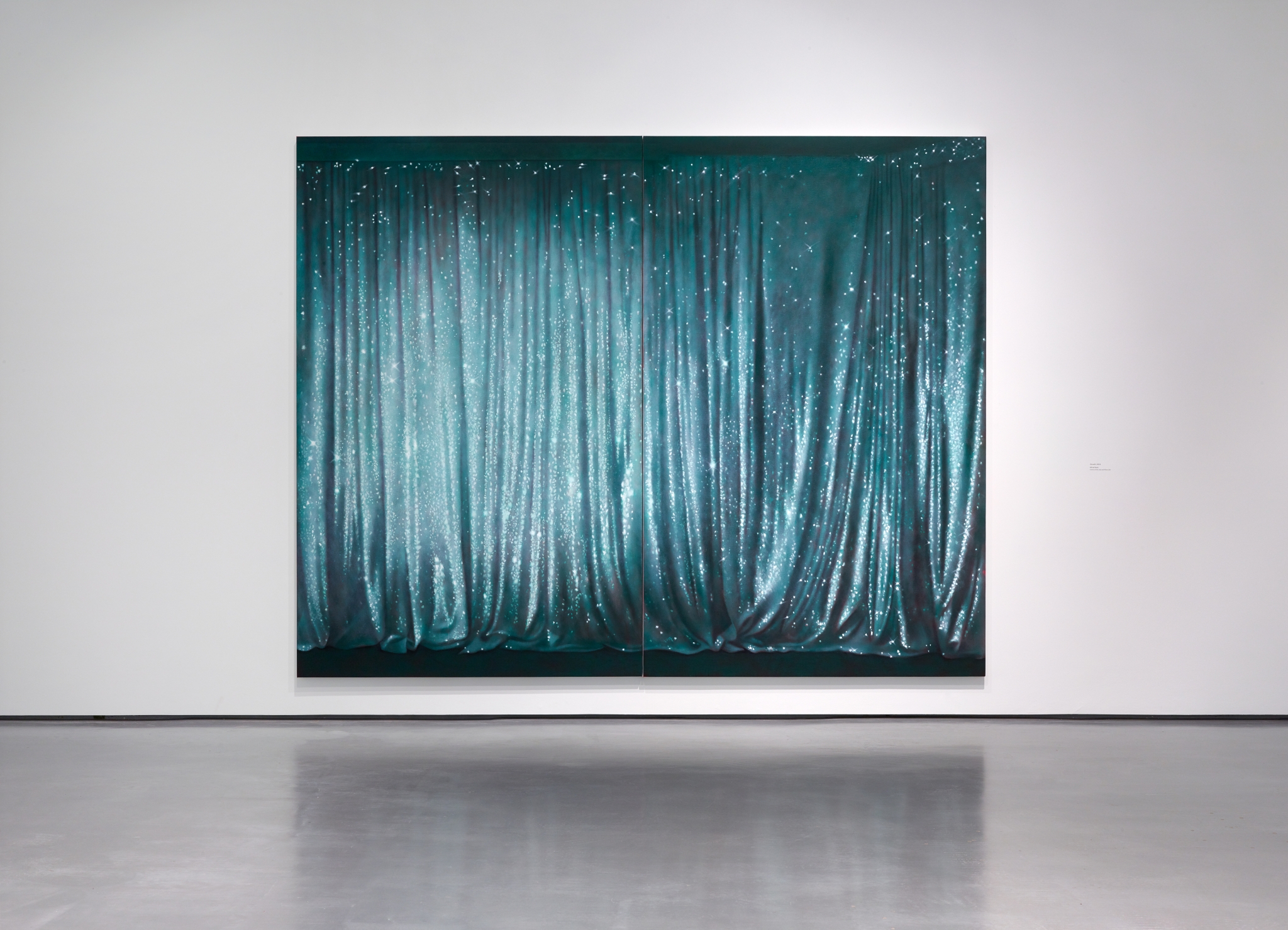 LG: People talk about the curtains more than any other series, I think because they deal with fabric, and obviously that’s got a long art historical precedent. Curtains are seductive but also secretive; nothing is actually revealed, though there’s this sense that something will be, given we understand them as potentially opening or closing. I enjoy this tension. They’re a beautiful, seductive object, and I’m kind of playing with denying access whilst also offering, like a tantalising fragment. Then there’s the performative, theatrical element, and what that suggests. Thinking about where curtains are seen, across the whole spectrum of culture from high to low, in grand venues like theatres and cinemas, but also seedy nightclubs and working men’s clubs.