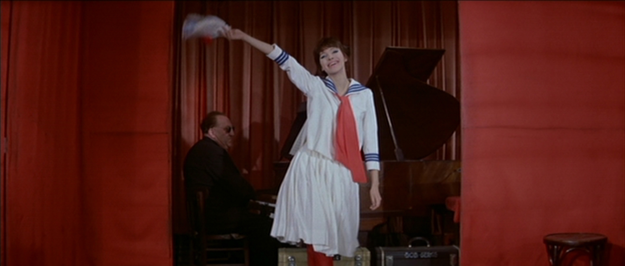 A Woman is A Woman (1961) is directed by Jean-Luc Godard. Its heroine, Angela, is played by his newlywed wife, Anna Karina. Lights shine through blue, red, and purple gels onto Angela. She’s in lingerie, in a strip club, in Paris. It’s the start of the sixties, and the besotted Alfred, (a young Jean-Paul Belmondo) is waiting for her outside. The club is almost empty—it’s the middle of the day, and most people have places to be. For Angela, that place is the Zodiac Club. She twirls her long brown hair around her finger, not caring if stray pieces get stuck to her eyeshadow. She sings, I’m no angel… I’m very cruel… But men don’t seem to mind, because I’m very… very… beautiful…